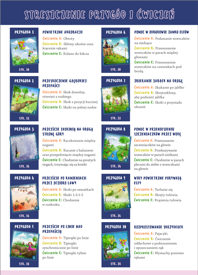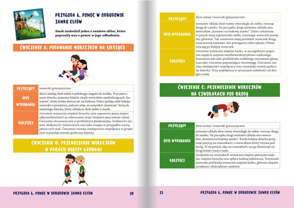 Celem tych ćwiczeń jest wszechstronny rozwój koordynacji ruchowej, sprawności motorycznej i fizycznej, poprawienie i utrwalenie prawidłowej postawy oraz twórcze pobudzenie ich wyobraźni.